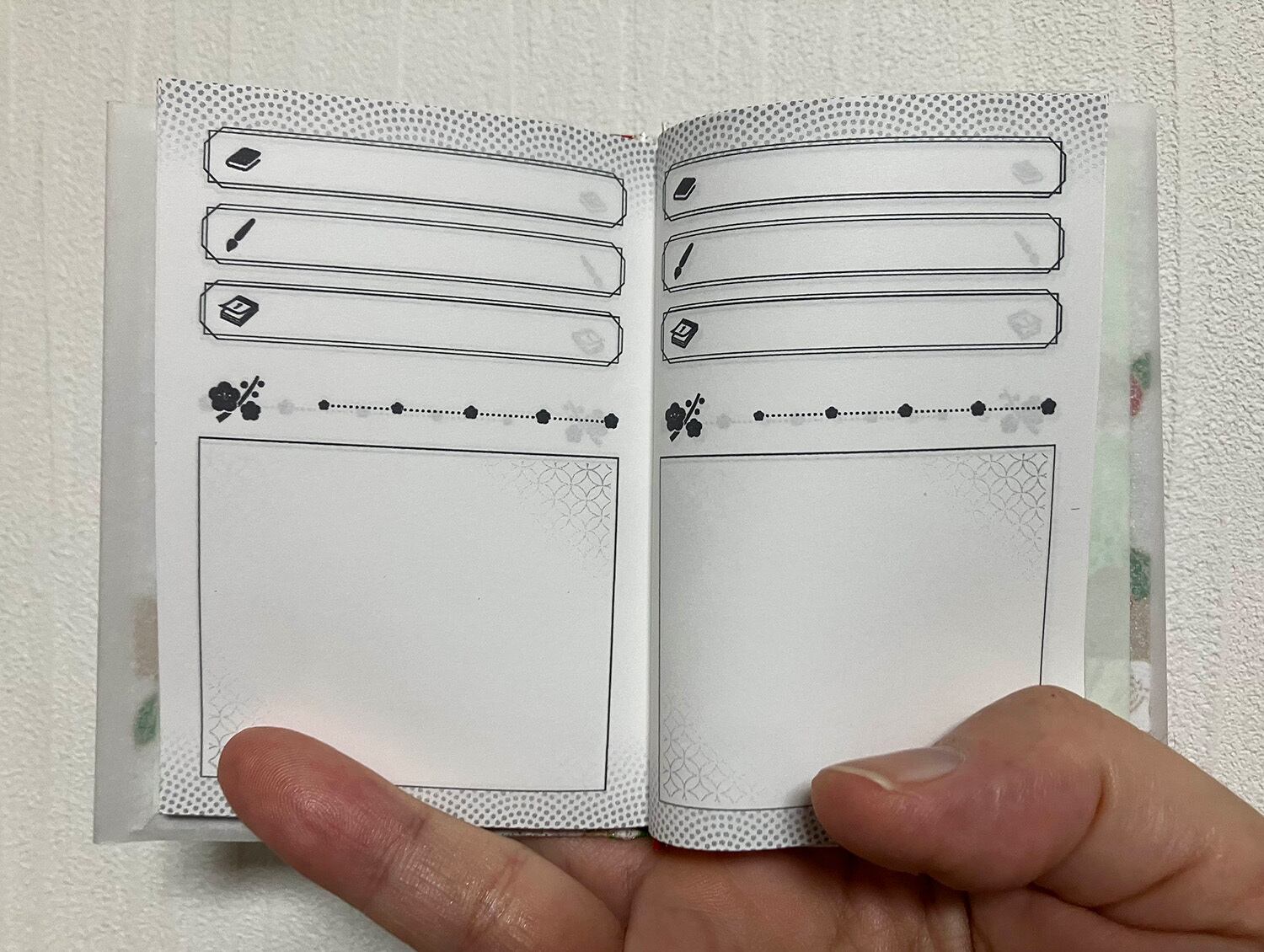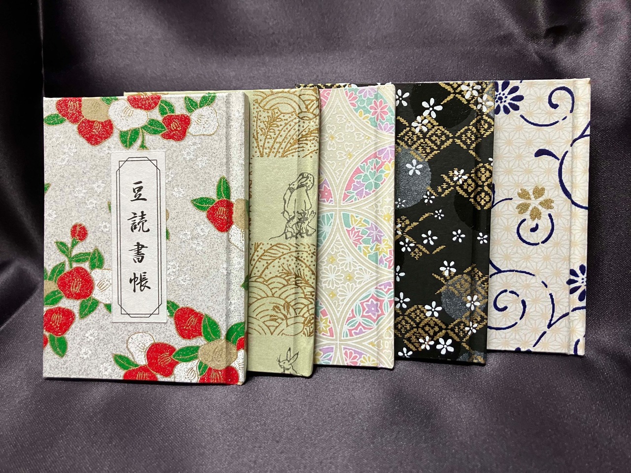 豆本と同様の製本過程で製作した、豆本サイズのプチノートと読書ノート。